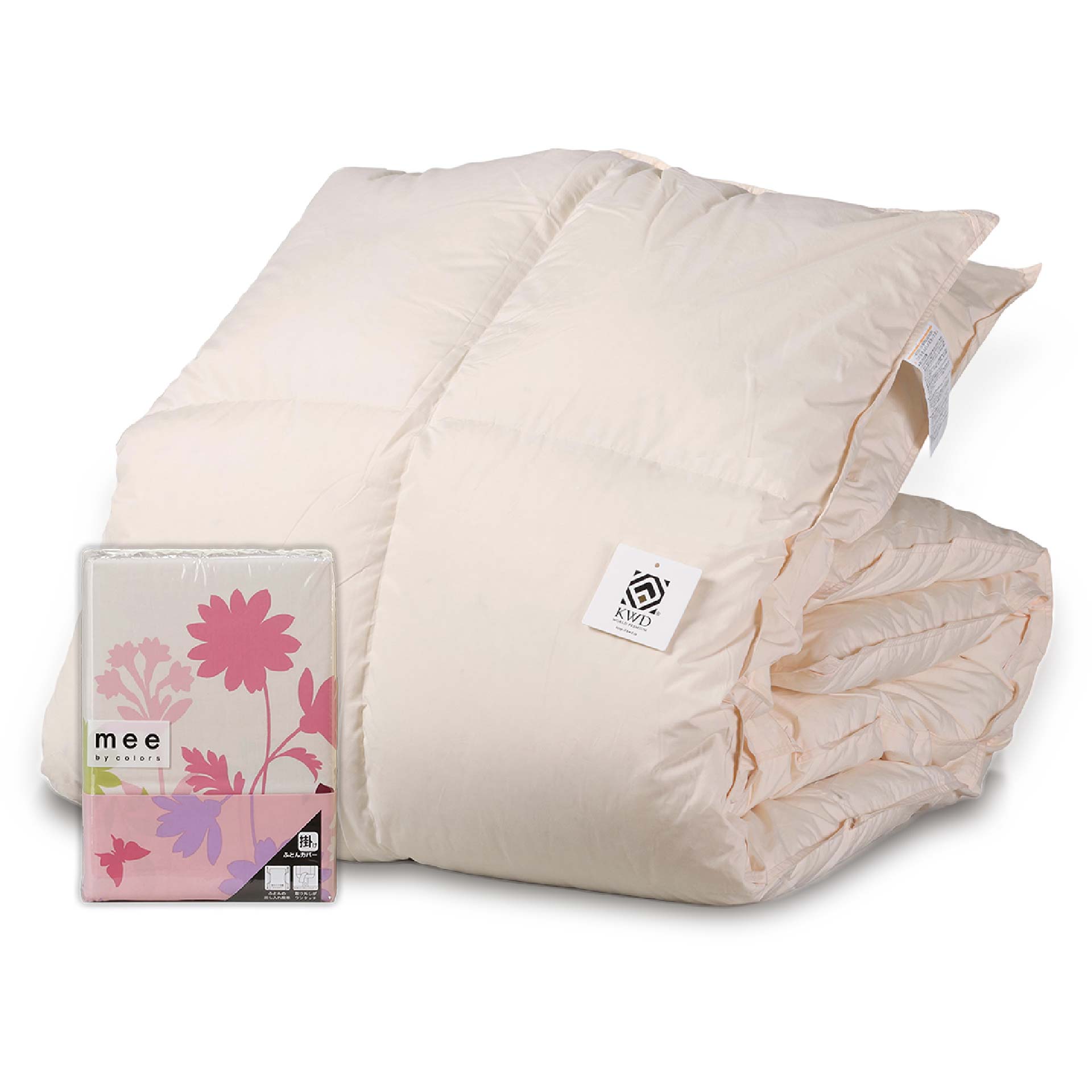 シングル 150cm×210cm 詰物量 1.2㎏ セミダブル 170cm×210cm 詰物量 1.4㎏ ダブル 190cm×210cm 詰物量 1.6㎏ クイーン 210cm×210cm 詰物量 1.7㎏ キング 230cm×210cm 詰物量 1.9㎏ 8ケ所ループ付き |
