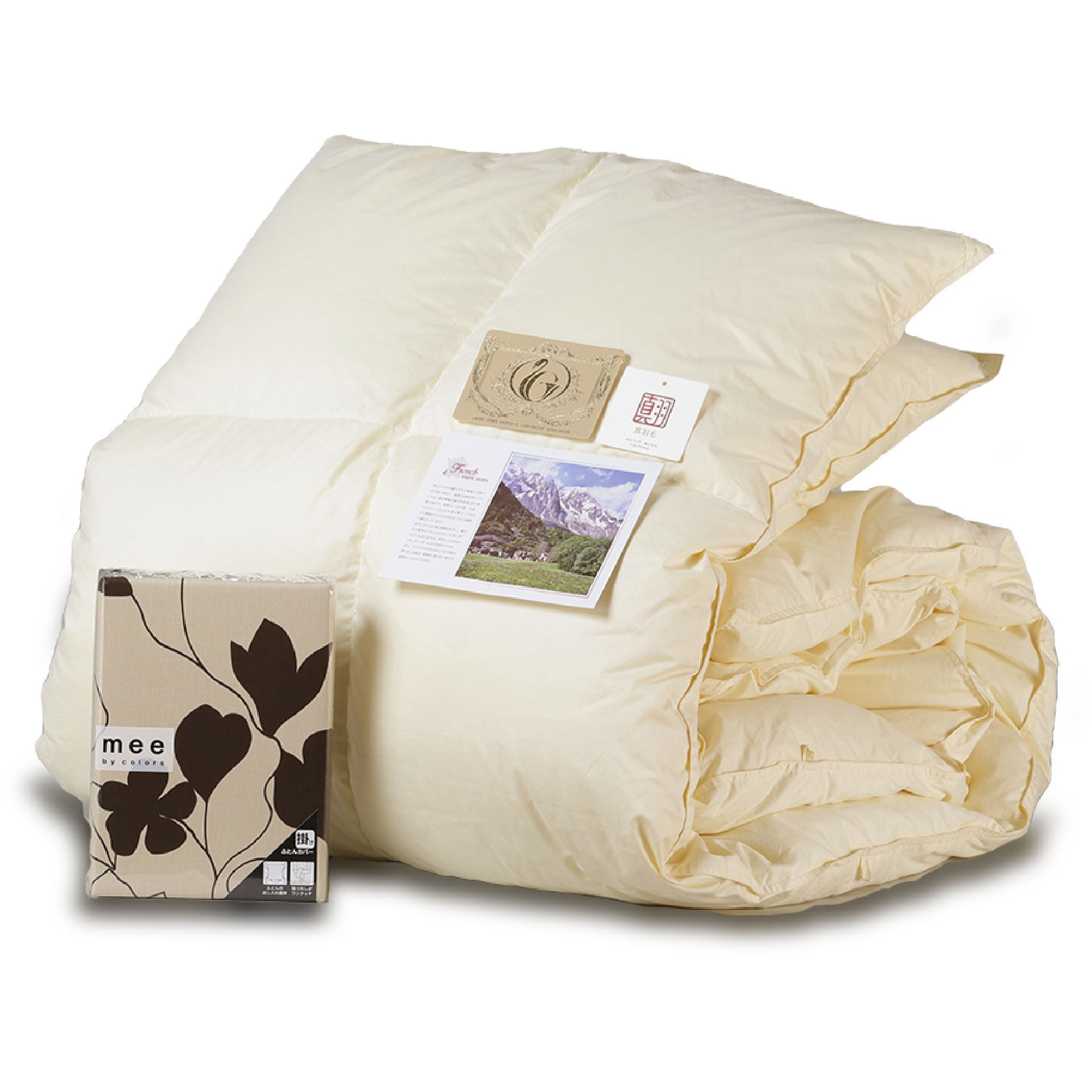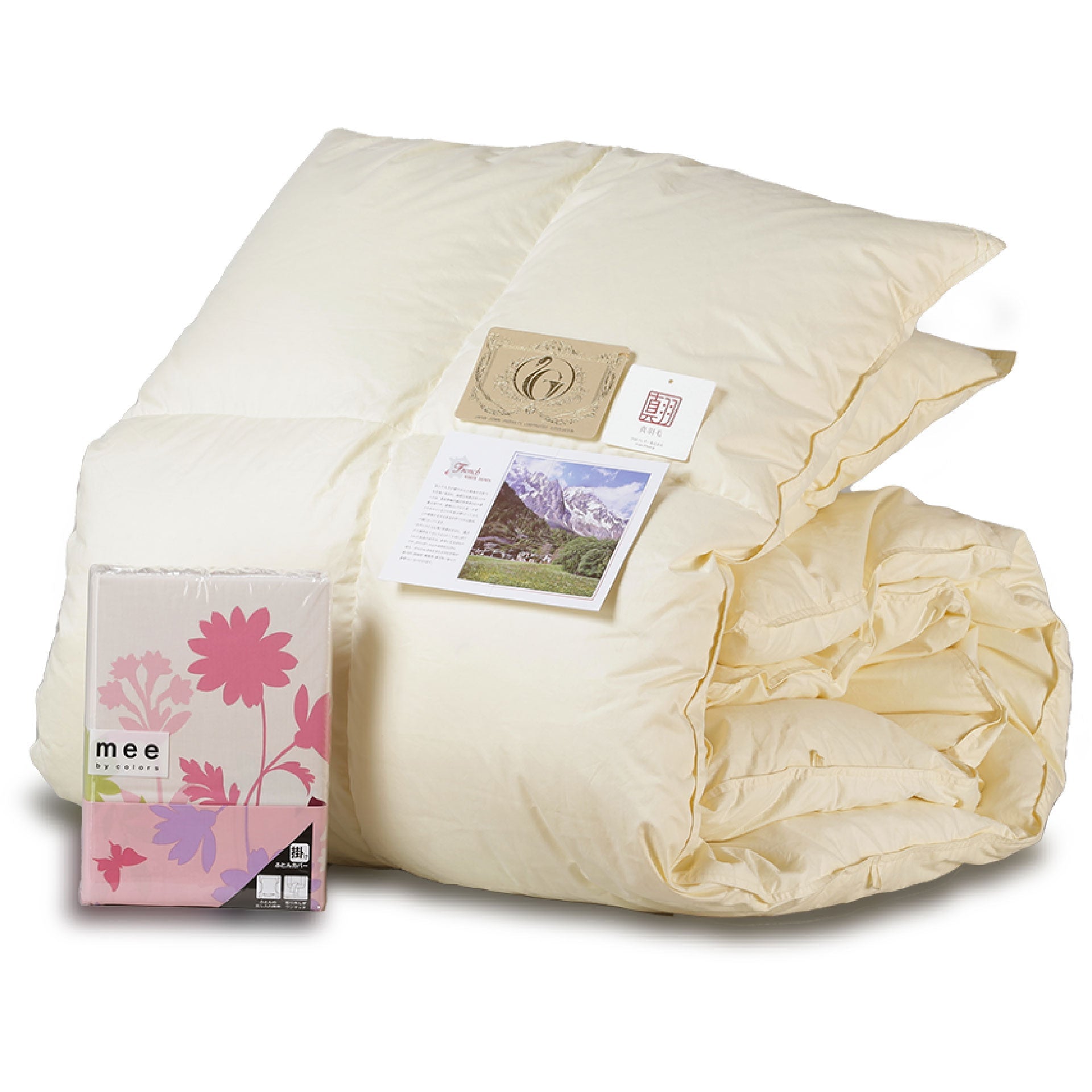 【側生地】 ポリエステル85% 綿15%(TTCブロード) 抗菌防臭加工(SEK) ダニ通過防止花粉フリー加工(SEK)ソフト加工 超軽量生地 8ケ所ループ付き 【キルト】 4×5マス 立体キルト マチ高さ5cm 【布団綿】 フランス産ホワイトダックダウン 93% フェザー 7% 400ダウンパワー ロイヤルゴールドラベル 河田フェザー 真羽毛使用 河田フェザーによる国内洗浄済み |