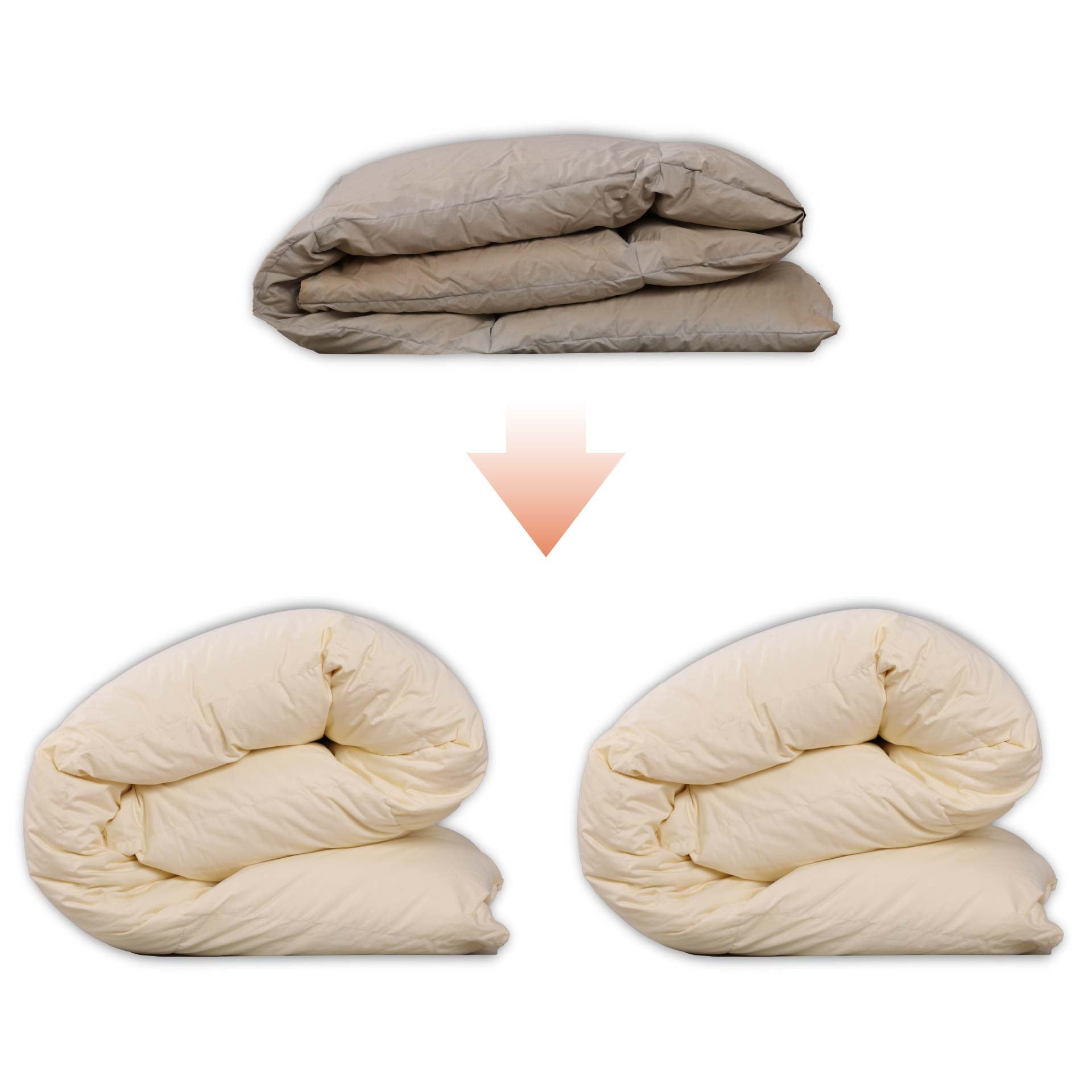 羽毛布団 打ち直し キング→シングル2枚 サイズ変更 他社製品も承ります。