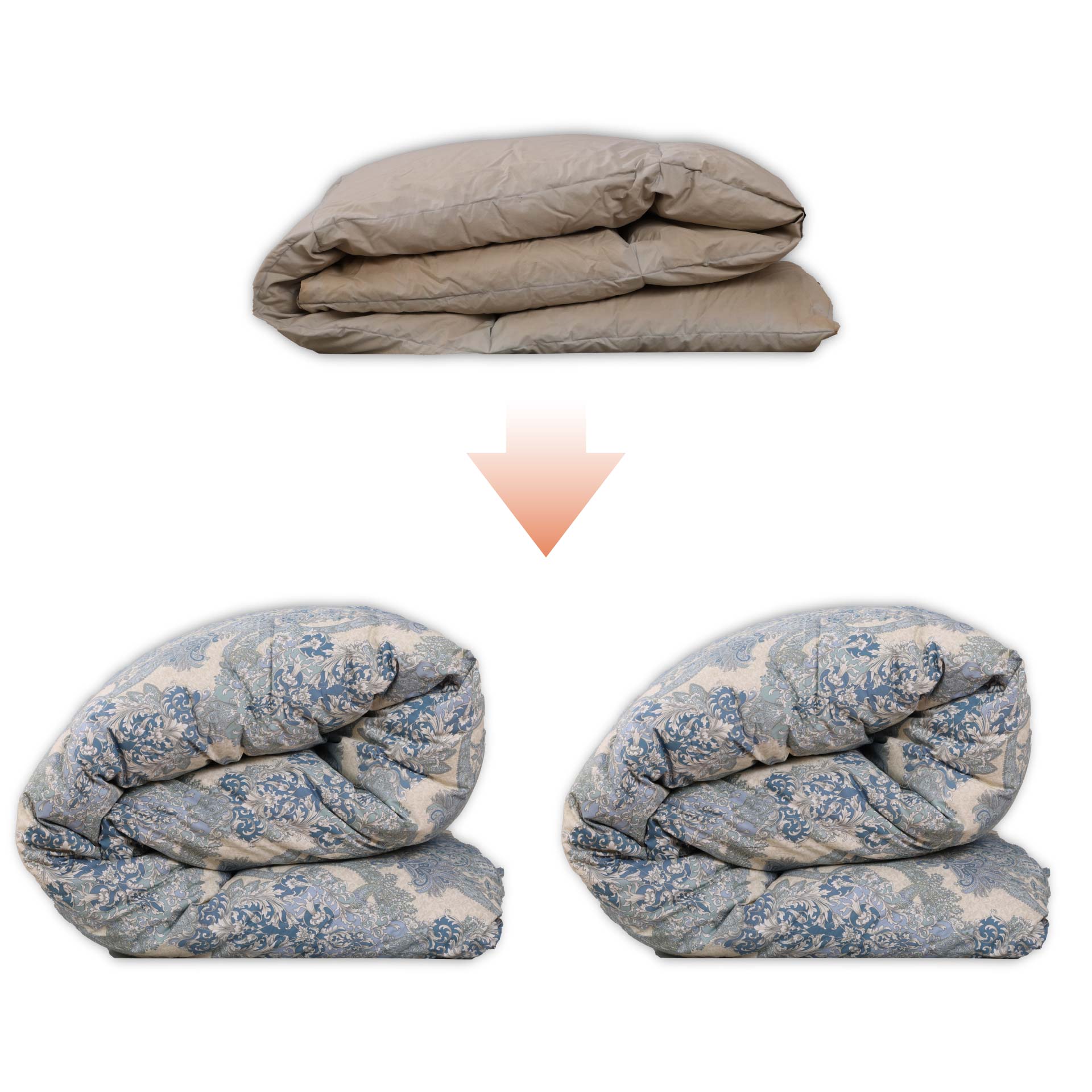 羽毛布団 打ち直し クイーン→シングル2枚 サイズ変更 可 足し羽毛 フランス産ダウン 新品同様ふっくら仕上げ 【鞆のふとん家】